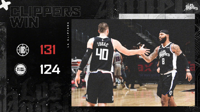 jrs直播网4月12日讯 NBA常规赛,快船今日迎战活塞,前者一波四连胜后继续排在西部第三的位置,而后者上场比赛则是输给了开拓者在东部垫底,本场莱昂纳德缺战。比赛上来活塞就迅速反客为主,尤其是在外线保持了极高的命中率,整个第一节他们都保持着领先,进入次节快船多次发起反扑,最终在半场结束时成功反超了1分。易边再战,萨迪克-贝突然爆发,个人里突外投连续得分帮助活塞再次取得领先,但进入末节他们的命中率再次出现下降,快船趁势实现反超并逐渐将分差拉开,活塞没有再获得任何机会,最终快船力克活塞,迎来五连胜。
