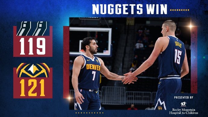 掘金(34-18):约基奇26分13篮板14助攻,波特22分10篮板2助攻,戈登11分2助攻,巴顿17分5助攻,莫里斯21分3篮板2助攻,多齐尔9分5篮板2助攻,麦基4分8篮板。