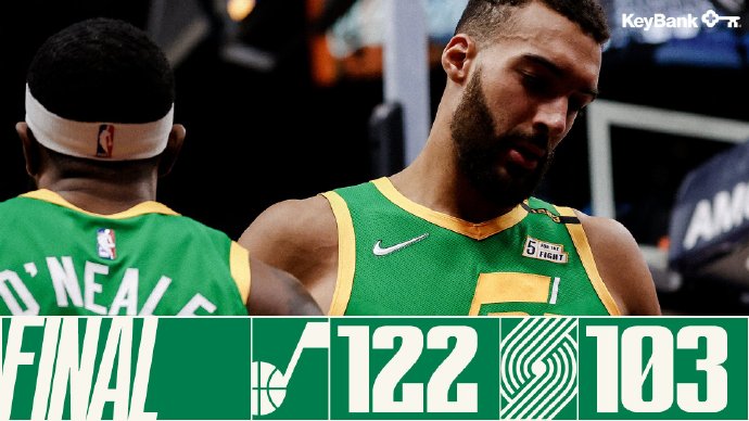 jrs直播网4月9日讯 NBA常规赛爵士主场迎来开拓者的挑战,虽然爵士仍旧占据榜首的位置,但是近来遭遇2连败。刚开场米切尔接连砍分帮助爵士取得领先,开拓者后场三名枪手轮番拿分帮助开拓者紧咬比分。第二节虽然前半段爵士仍旧牢牢保持领先,但随后开拓者打出一波12-0的高潮完成反超,上半场开拓者56-53领先3分。下半场回来米切尔带领爵士首先反扑完成反超,随后爵士又多次打出高潮单节净胜开拓者21分一举拉开比分,第四节开拓者也未能缩小分差,最终爵士122-103轻松击败开拓者结束2连败,同时他们取得主场23连胜。