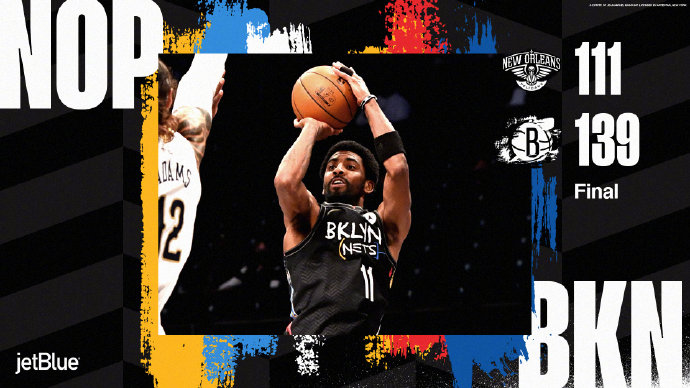 篮网(36-16):欧文24分2篮板6助攻,阿尔德里奇22分3篮板2封盖,杜兰特17分7篮板5助攻,哈里斯14分6篮板4助攻,格林11分4篮板4助攻,布朗9分8篮板5抢断,格里芬10分2篮板2助攻,齐奥扎12分8助攻。