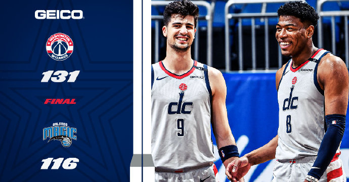 奇才:阿夫迪亚16分5篮板2助攻、八村塁9分7篮板2助攻3抢断、比尔26分5助攻、威斯布鲁克23分14篮板16助攻、洛佩兹19分2篮板2助攻、贝尔坦斯22分、马修斯3分、伊斯梅尔-史密斯6分7助攻