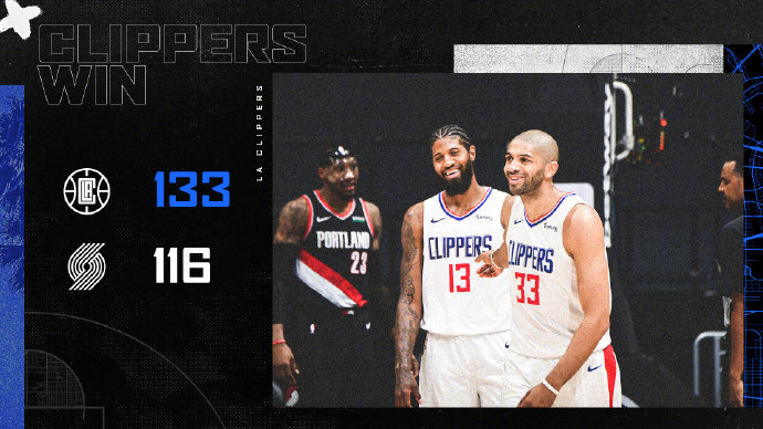 jrs直播网4月7日讯 NBA常规赛快船主场对阵开拓者,开场后快船迅速进入状态,虽然坎特和麦科勒姆先后爆发,但乔治首节独得22分带领快船单节轰下47分建立起15分优势。第二节虽然快船率先发力一阵三分雨下一度将分差拉大到35分,开拓者依靠鲍威尔和麦科勒姆轮番砍分逐渐追上比分,上半场快船73-66领先7分。下半场回来虽然开拓者掀起反扑追分,但雷吉挺身而出独得8分帮助快船稳住节奏,此后开拓者仍旧不断发起反扑追分,但乔治和雷吉总是及时拿分,第四节快船将分差拉大到20分左右,最终快船133-116轻松击败开拓者。