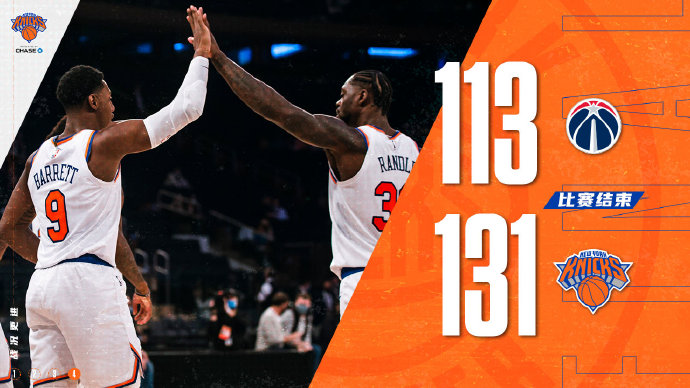 jrs直播网3月24日讯 尼克斯主场迎战奇才,两队近况都不佳,均迫切需要一场胜利提振士气。首节奇才凭借火热的手感快速建立了领先优势,但很快尼克斯就在兰德尔和布洛克的带领下打出11-1的攻击波完成反超,次节奇才双少状态全无,尼克斯则乘胜追击,奎克利、巴雷特、罗宾逊连续奉献高能时刻,半场结束时两队分差已然来到20分之多。第三节兰德尔迎来大爆发,外线连中4记三分简直不可阻挡,双方分差很快就被拉大到30分,末节奇才一众替补在阿夫迪亚的带领下打出11-2的小高潮缩小分差,无奈之前差距过大,奇才眼见追分无望只能放弃,最终尼克斯主场131-113大胜奇才。