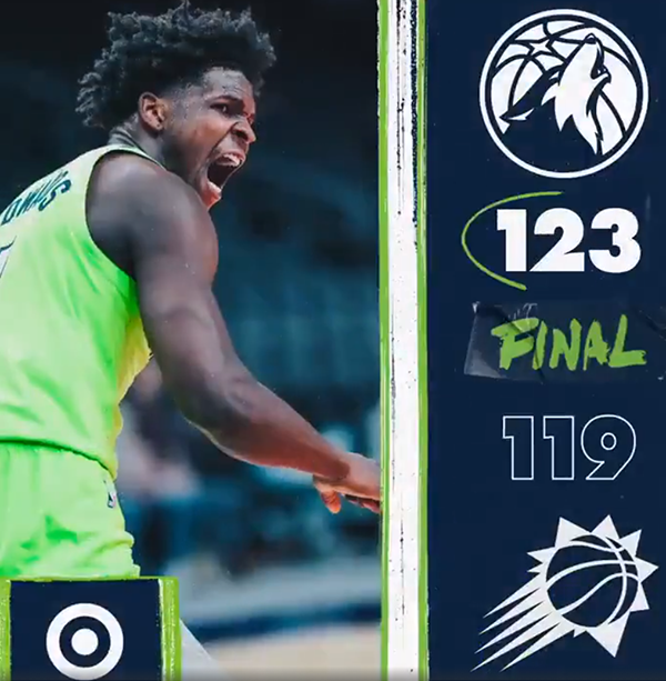 jrs直播网3月19日讯 NBA常规赛,太阳今日迎战森林狼,前者上场比赛大胜灰熊排在西部第二位,而后者上场比赛则是输给了湖人依旧在西部垫底。比赛上来森林狼就表现出了极强的求胜欲望,唐斯和爱德华兹都有上佳表现,而太阳这边单节失误上双打得十分混乱,进入次节太阳虽然在进攻端表现不错,但实在无法限制爱德华兹的发挥,后者单节拿到15分帮助森林狼紧咬比分,半场结束时太阳领先5分。易边再战,太阳一直占据着场上的主动,分差也是被拉开到了两位数,但森林狼并没有放弃并成功在末节追上了比分,比赛悬念保持到了最后,关键时刻爱德华兹杀到禁区造成犯规但两罚中一,不过森林狼使出犯规战术没有给对手三分绝平的机会,最终森林狼123-119逆转太阳。