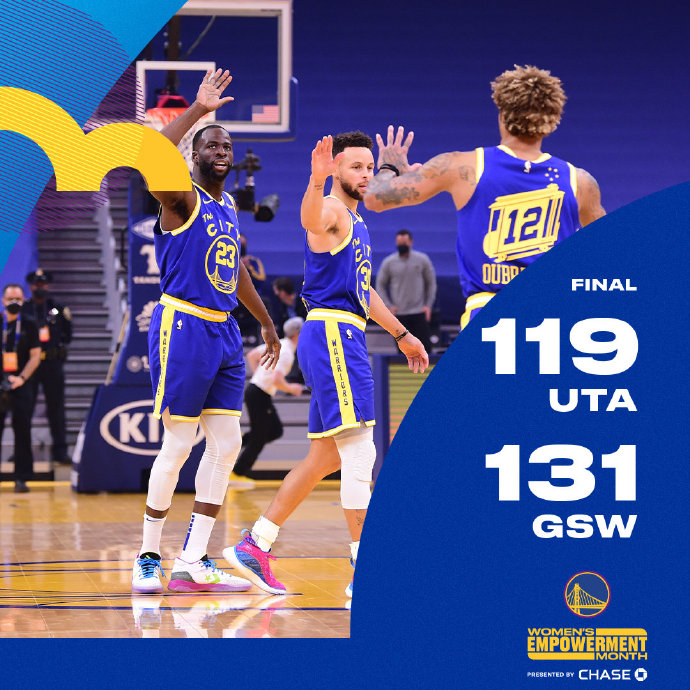 jrs直播网3月15日讯 勇士主场迎来爵士的挑战,前者最近4连败掉至西部第9位,状态急需调整;而后者上一场轻取火箭稳居西部首位。开局上来双方都比较慢热,中段库里带领勇士打出15-0的高潮一举奠定优势,随后双方展开拉锯战,首节结束勇士领先11分。次节爵士抓住勇士替补没经验打出7-0的开局将分差追近,后半段勇士抓住爵士的连续失误,几个关键三分帮助勇士稳住局势,格林最后连续得分帮助勇士半场结束依然领先13分。易边再战,米切尔和戈贝尔内外联手帮助爵士追近比分,但勇士总是有人能回应上,三节结束勇士还是领先9分。末节爵士再次打出6-0开局随后将比分缩小至1分,但勇士替补们顽强抵抗守住优势,后半段勇士连续三个三分再次拉开分差,爵士连续犯错误失去翻盘希望,最终勇士击退爵士,终结自己的4连败。