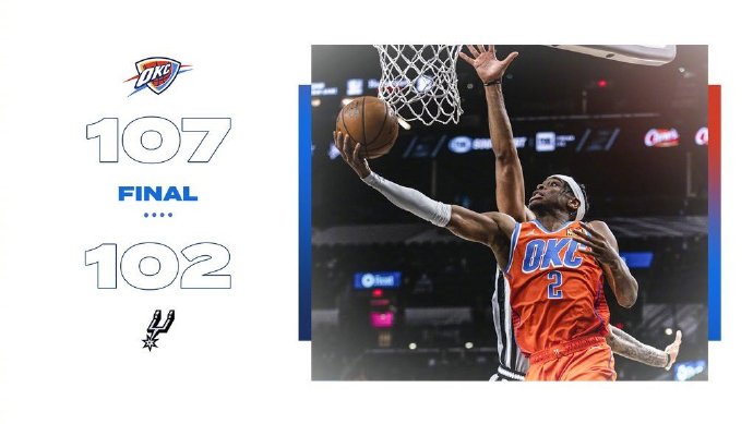 jrs直播网3月5日讯 NBA常规赛雷霆对阵马刺,雷霆最近遭遇2连败。开场后雷霆外线轮流投进三分取得领先,不过马刺稳扎稳打紧追不舍没有让分差被拉开。第二节回来雷霆突然手感丢失,马刺打出反击完成反超并且依靠外线手感将分差拉大到两位数,上半场马刺61-50领先雷霆。下半场回来雷霆加快进攻节奏,他们多次打出反击一度反超比分,不过米切尔连续两个三分帮助马刺稳住节奏,但第四节雷霆又连续掀起反扑完成反超,马刺最后进攻乏力,最终雷霆107-102逆转击败马刺。