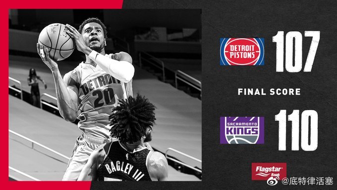 jrs直播网2月27日讯 9连败的国王东征的最后一场来到了汽车城的小凯撒球馆,渴望用一场胜利来结束连败重振士气,而东部垫底的活塞也期待在全明星赛前走出阴霾。不过本赛季表现出色的新秀哈里伯顿的缺席让本场国王的后场轮换饱受挑战,白边怀特塞德因健康安全协议的继续缺阵也让球队内线无人可换。活塞方面锋线核心格兰特的及时回归则给球队打入了一针强心剂。比赛开始,上一场惨败尼克斯赛后沃顿的爆摔战术板果然让跌入低谷的国王触底反弹,希尔德连中三记三分,霍姆斯则在攻防两端统治内线,国王也从开场就把领先优势建立到了10分以上,次节交战双方手感同时降入冰点,失误不断,节末活塞凭借全联盟最强替补火力的出色发挥渐渐蚕食着分差,半场战罢,活塞也把最大17分的分差缩小到了只有3分。易边再战,霍姆斯迅速的犯规累积被活塞抓住机会,丹尼斯-史密斯单节12分率队终于反超比分,而国王末节依靠奇兵别利察的出色发挥追平比分,此后双方陷入僵持交替领先,关键时刻,巴恩斯晃飞普拉姆利命中冷血三分,约什-杰克逊关键罚球不中,最终国王客场以110-107险胜活塞结束九连败。