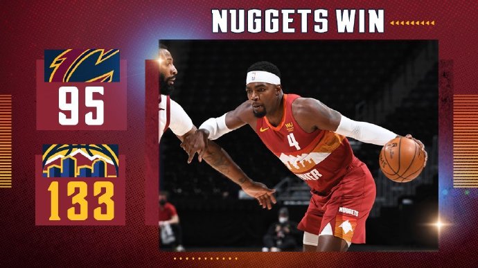 jrs直播网2月11日讯 NBA常规赛,骑士今日对阵掘金,骑士此前遭遇4连败排名跌至东部第11位,掘金遭遇3连败排名西部第8。比赛开局阶段,双方经过短暂僵持后掘金很快掌控局面,首节便确立了17分的领先优势,次节双方交替升分,但掘金凭借外线超高命中率扩大领先,半场结束时64-43领先21分。下半场回来掘金保持火热手感很快就确立了30分的领先优势,掘金前三节得分上百大比分领先爵士;末节比赛提前失去悬念,纳吉出场火力全开命中4记三分,最终掘金133-95大胜骑士终结3连败,骑士遭遇5连败。