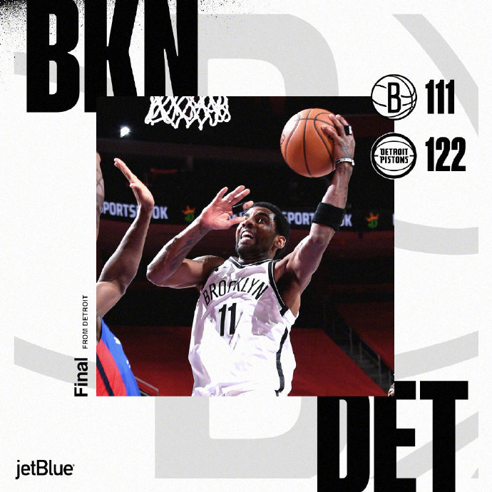 jrs直播网2月10日讯 活塞今日坐镇主场迎来篮网的挑战,欧文休战一场后火速回归,而杜兰特仍然因安全协议缺阵。首节比赛篮网的防守依旧糟糕,加上开局慢热前3分钟仅拿到3分的表现,他们开局不久便落后两位数打的非常被动,次节开局活塞再送一波11-3的攻势将领先拉大至本场最大的20分,自此篮网才找到感觉开始反击,在欧文和哈登的带领下他们回敬一波15-4的攻势将分差追至9分结束上半场。第三节篮网在哈登和欧文的率领下一度将分差追至2分,但防守端的问题仍然还在,活塞随后及时回暖很快便拉开比分,第四节初一波7-0将分差重新拉大至两位数奠定胜局。最终,活塞击败篮网结束4连败的同时,也送给篮网3连败。