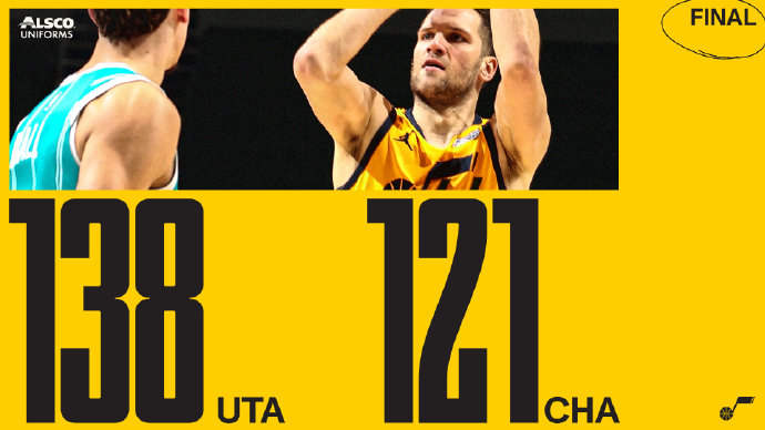 - 【集锦】[微博全场集锦] 博扬31+7+5 米切尔30+5 三球34+8 爵士轻取黄蜂2021-02-06 10:38:10
