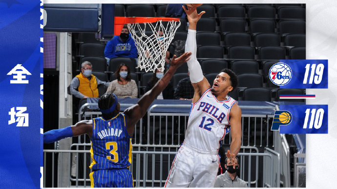 jrs直播网2月1日讯 NBA常规赛步行者主场对阵76人,76人虽然近来取得2连胜,不过恩比德因为背部紧张缺阵。开场后布罗格登一阵连续拿分帮助步行者取得领先,随后麦康纳替补登场后也手感火热,首节步行者就取得10分优势,第二节76人依靠三分一度缩小分差,但萨博尼斯接连单打得手,加上布罗格登依旧发挥稳定,步行者63-54领先结束上半场。下半场步行者外线率先投开,萨博尼斯内线发挥亮眼一度帮助步行者领先到20分。不过76人迅速调整又重新咬住比分,并且在哈里斯和科克马兹的发挥下在最后关头打出攻势完成反超,步行者进攻断电,最终76人119-110逆转步行者拿下3连胜。
