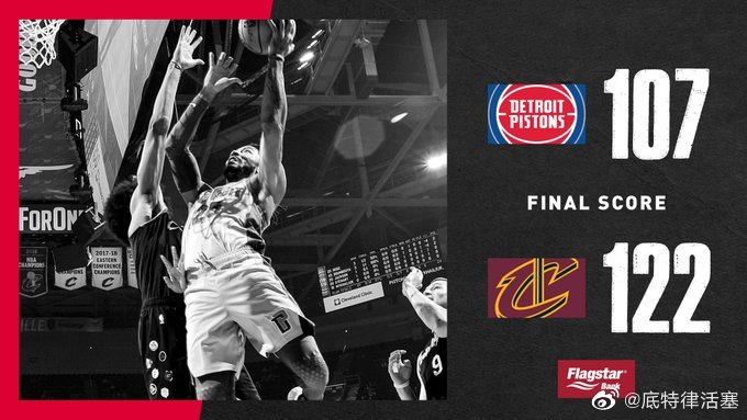 jrs直播网1月28日讯 NBA常规赛骑士主场对阵活塞,近来骑士遭遇2连败,开场后活塞依靠外线三分取得领先,德拉蒙德内线连续拿分,此后骑士通过反击和杀入内线追平比分。第二节骑士失误不断,活塞一举将比分反超,不过骑士迅速调整紧咬比分,上半场活塞56-54领先2分。下半场回来骑士攻势凶猛一举夺回领先,塞克斯顿和德拉蒙德一内一外都发挥出色,他们在第四节将分差拉大到19分一举锁定胜局,最终骑士122-107击败活塞。