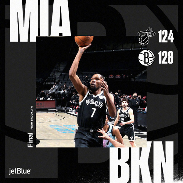 jrs直播网1月24日讯 在克利夫兰连输两场之后,篮网今日回到主场迎战热火,上一场轮休的杜兰特本场回归。上半场哈里斯手感热得发烫成为X因素,在三巨头面前,哈里斯首节命中4记三分带领球队早早拉开比分,上半场一人命中6记三分攻下20分,仅比三巨头半场总得分少4分,篮网借势最多取得18分的领先,不过阿德巴约最后时刻站出来带领热火打出14-6的攻势将分差缩小至10分进入下半场。第三节的篮网仍然还占据着上风并一直保持着领先,但第四节节初的轮换哑火直接导致局面陷入被动,热火开局连中三分送出11-0的攻势很快追上比分并重燃悬念,不过欧文屡屡关键时刻救主,他末节独砍18分,最后时刻砍下关键7分为球队奠定胜局。最终,篮网主场扑灭热火结束2连败。