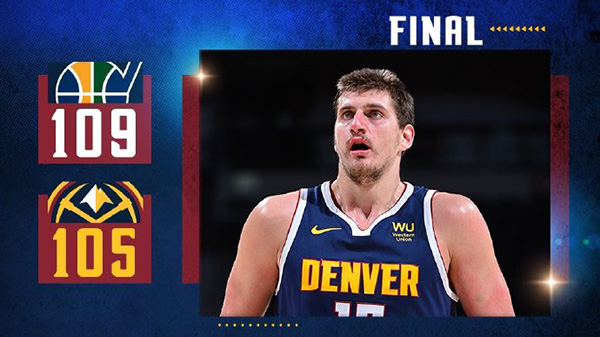 jrs直播网1月18日讯 NBA常规赛爵士对阵掘金,爵士近来状态不错取得4连胜,开场后爵士外线多点开花早早取得10分优势,随后掘金依靠穆雷的出色发挥逐渐追上比分,第二节虽然爵士外线再次打出攻势,不过穆雷又是接连砍分完成反超,上半场掘金58-53领先5分。下半场回来两队多次在内线交手,两队多次打成平手,第四节爵士在米切尔的带领下再次取得领先,掘金最后连续进攻不中,最终爵士109-105力克掘金取得5连胜。