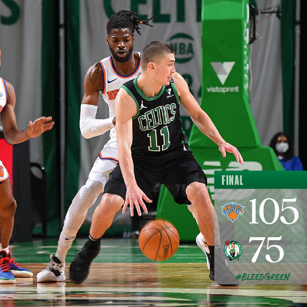 jrs直播网1月18日讯 NBA常规赛,凯尔特人坐镇主场迎战尼克斯。此役,绿军主将肯巴-沃克迎来赛季首秀,塔图姆等人缺阵。首节比赛,杰伦-布朗高效拿下11分,但绿军其他球员合计仅得6分,而尼克斯双星兰德尔和巴雷特合砍19分10板,带队以28-17领先。第二节,尼克斯新秀奎克利表现出色,他连连得分帮助尼克斯打出进攻高潮,一举将分差拉大到15分。下半场开局,尼克斯再度轰出攻击波,把领先优势扩大到20+!而刚刚复出的沃克一度因伤返回更衣室,好在没有大碍,本场未继续出战。末节比赛沦为垃圾时间,尼克斯最终在客场以105-75大胜凯尔特人,结束五连败,并终结对手的五连胜。