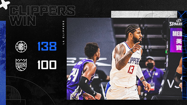 jrs直播网1月16日讯 NBA常规赛快船客场对阵国王,快船近来取得2连胜,开场后国王率先打出高潮,但快船马上回敬高潮完成反超,此后两队陷入僵持,第二节两队仍旧大打对攻战,乔治和小莫里斯外线手感火热逐渐帮助球队取得领先,上半场快船69-61领先8分。下半场回来快船仍旧攻势凶猛,国王则进攻断电,快船一举建立起20分领先,莱昂纳德状态出色频频砍分,此后虽然国王稍稍找回些手感,但无力弥补巨大的分差,最终快船138-100大胜国王取得3连胜。
