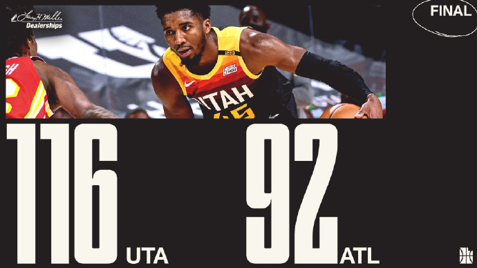 jrs直播网1月16日讯 爵士坐镇主场迎战老鹰,此役爵士外线手感火热,康利、米切尔和博格达诺维奇连中三分,早早就帮助爵士建立起两位数领先。之后卡佩拉和科林斯轮番冲击内线为老鹰追分,但是米切尔在次节再度开火连续命中三分,率领爵士抵挡住老鹰的追分势头,以61-46保持两位数领先结束上半场。易边再战,爵士延续着手感,米切尔、博格丹诺维奇和克拉克森再轮番轰进三分,多点开花的爵士进一步扩大领先,比赛悬念提前失去。最终,爵士兵不血刃地以116-92击退老鹰,取得4连胜。