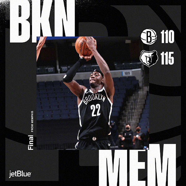 jrs直播网1月9日讯 篮网背靠背前往客场挑战灰熊,此役杜兰特和欧文继续缺阵。上半场篮网手感不佳,灰熊则找到外线准星,狄龙-布鲁克斯、克拉克和凯尔-安德森等连中三分,帮助灰熊一度建立起20分以上的领先优势。易边再战,篮网手感回暖,勒韦尔在第三节独中5记三分率队一度反超比分。不过,灰熊的狄龙-布鲁克斯和克拉克在末节及时站出来得分回敬,帮助灰熊重新扩大领先稳住阵脚,篮网则在比赛末突然掉链子陷入3分多钟得分荒。最终,灰熊以115-110击退篮网,止住3连败的颓势。