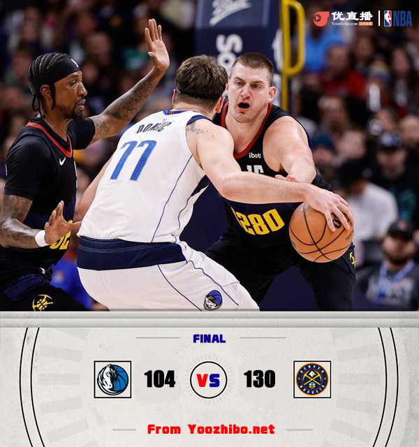jrs直播网12月19日讯 NBA常规赛,掘金主场迎战独行侠。掘金西部第四,独行侠西部第三。上半场,开场双方短暂相持,掘金内外开花占据场上主动,东契奇高效输出,戈登和穆雷联手拿分帮助球队保持优势,次节双方大打对攻,东契奇继续全面表现,但掘金连中三分将分差拉开到两位数,半场打完掘金68-59领先9分。易边再战,独行侠命中率骤降,掘金一波10-0取得20分优势,末节掘金持续发力打出13-4的攻击波,独行侠换下东契奇投子认负。最终,掘金130-104大胜独行侠,主场过关。