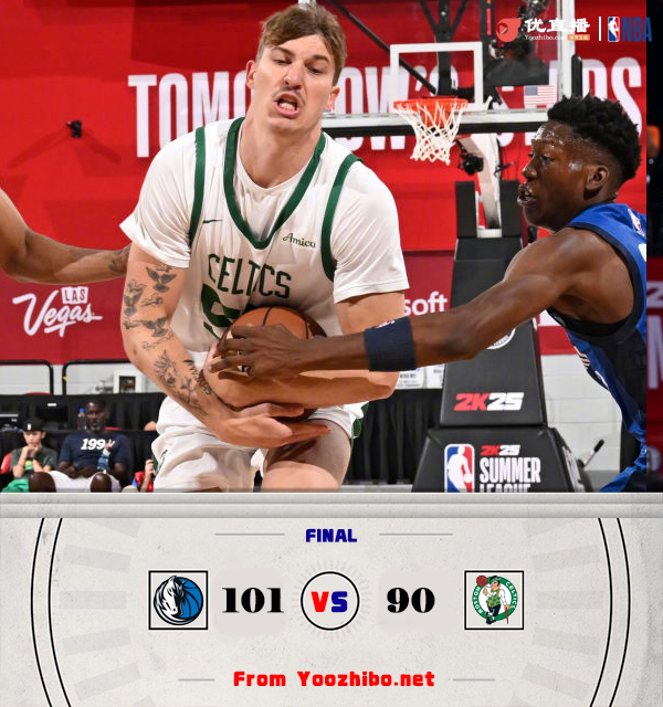 jrs直播网 7月20日讯 NBA夏季联赛,独行侠对阵凯尔特人。比赛开始,独行侠率先发力,多点开花打出12-2的攻击波很快取得两位数领先,凯尔特人里突外投努力追赶,次节双方围绕10分分差展开拉锯战,独行侠连投带罚保持优势,凯尔特人连中三分顽强咬住,半场战罢独行侠55-45领先凯尔特人。易边再战,凯尔特人连投带罚拿分,独行侠连中三分保持10分左右优势,末节独行侠稳扎稳打,凯尔特人苦苦追赶无果。最终,独行侠101-90击败凯尔特人。