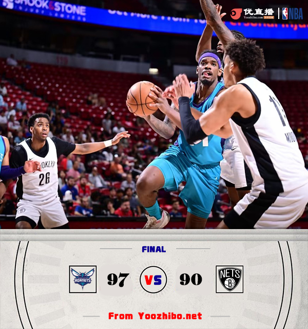 jrs直播网 7月22日讯 NBA夏季联赛排位赛,黄蜂对阵篮网。比赛开始,黄蜂外线连续发炮打出8-2开局,但篮网马上回应7-0小高潮,双方命中率一般,克洛尼和泰瑞斯-马丁接连三分命中助篮网首节反超2分,次节打了2分多钟黄蜂才打破僵局,双方继续展开拉锯战,斯莱特接连三分半场怒轰21分帮助黄蜂重新取得2分领先。下半场,斯莱特继续火热手感,带领黄蜂一波15-2超级进攻波重新拉开双位数领先,但篮网外线多点开花接连5记三分再次咬住比分,三节黄蜂领先6分,末节篮网接连攻击内线一度又反超1分,但黄蜂接连外线一波11-0重新掌握双位数领先,最终黄蜂97-90力克篮网。