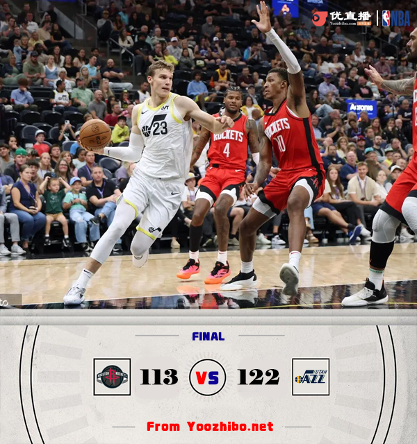 jrs直播网10月8日讯 NBA季前赛继续开打,火箭队迎来季前赛第一个对手爵士队。首节开局火箭立足防守迅速接管比赛,他们7分钟里仅丢2分,让爵士期间12投仅命中1球,出色的防守帮助球队取得15-2的攻势占据先机。次节爵士进攻端明显回暖不断蚕食比分,奈何后半段杰伦-格林突然爆发连续命中4记三分,他这一节独砍14分并帮助球队取得13分优势进入下半场。休息归来火箭攻防两端状态骤降,爵士在后半段轰出29-8的攻势一举反超比分,这之后双方逐渐换上替补开启练兵,而爵士也顶住了对手的猛攻。最终,爵士在最多落后19分的情况下逆转火箭拿下比赛。