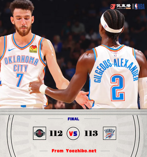 jrs直播网10月10日讯 NBA季前赛,雷霆今日迎着火箭,前者上场比赛战胜马刺,后者则是不敌爵士。比赛上来,雷霆就率先进入状态连拿五分取得领先,不到四分钟的时间他们就建立起两位数的优势,整个第一节火箭的进攻表现都不好,格林和狄龙两人合计10中1,次节火箭一度将比分追至37-37平,但随后雷霆就打出一波小高潮再次拉开,半场结束时火箭落后13分;下半场回来,雷霆换下主力阵容,这也让他们处于场上劣势,火箭抓住机会抹平分差,末节双方一直打得十分胶着,比赛悬念保持到了最后,关键时刻领先3分的雷霆使用罚球战术,萨缪尔斯故意罚球不中,麦克维冲到篮板命中绝平跳投将比赛拖入加时,加时赛火箭乘胜追击,一波小高潮直接带走比赛,最终火箭加时战胜雷霆拒绝连败。