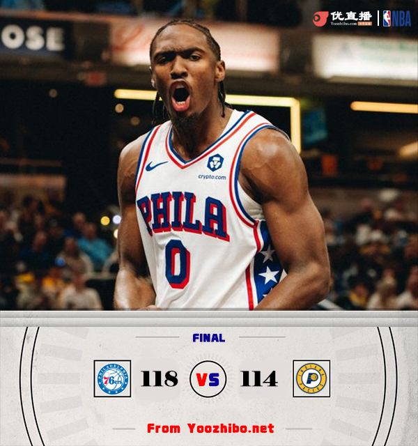 jrs直播网讯10月28日讯 NBA常规赛,步行者主场迎战76人。步行者开局1胜1负,76人遭遇2连败。恩比德和乔治继续缺阵。一开场,双方对飙三分,76人持续发力取得微弱领先,次节步行者展开反击,多点开花反超比分,洛瑞三分止血,半场战罢步行者58-52领先76人。下半场,步行者命中率下降,76人频频冲击篮筐连投带罚拿分重夺领先,末节双方争夺陷入白热化,比分始终紧咬,76人挑战球权归属反被吹犯规,但步行者连续失误,76人趁势反超,哈利伯顿关键三分将比赛拖入加时。加时赛,双方依旧打得难解难分,马克西内外开花,步行者连投带罚还以颜色,又到关键时刻马克西挑篮拿分后送出封盖,76人祭出点球战术,最终以118-114力克步行者。