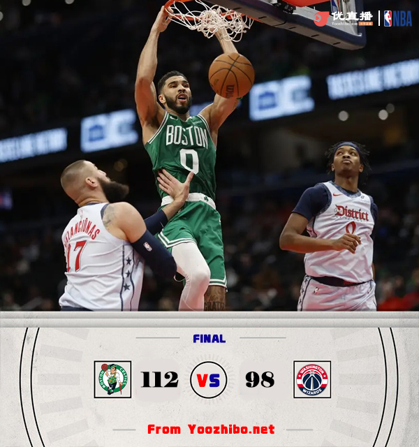 jrs直播网讯北京时间12月16日讯 NBA常规赛,凯尔特人客场挑战奇才。凯尔特人20胜5负高居东部第二,奇才3胜20负联盟垫底。上半场,两队开场势均力敌,比分交替领先,凯尔特人一波10-0确立优势,次节奇才仍无起色,普理查德连中三分带队将分差拉开到20分以上,奇才加强防守利用反击苦苦支撑,半场战罢凯尔特人67-52领先奇才。下半场,库利巴利连续拿分带队迫近比分,凯尔特人三分3连击强势回应,末节凯尔特人稳扎稳打保持优势,奇才苦苦追赶无果。最终,凯尔特人112-98轻取奇才,客场过关。