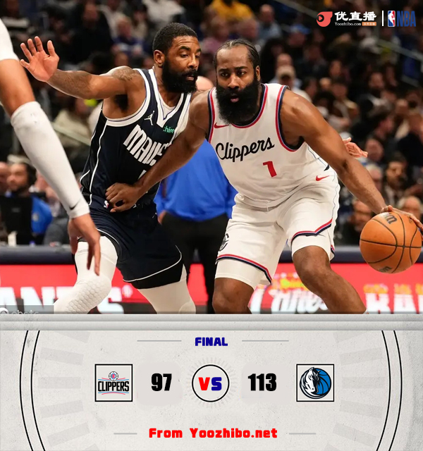 jrs直播网讯 北京时间12月22日讯 NBA常规赛迎来焦点大战,独行侠坐镇主场再战快船,东契奇因左脚跟挫伤继续缺阵,上场快船大胜独行侠,目前16胜12负位列西部第6位,独行侠17胜10负排在西部第4。首节开打后双方进攻状态慢热,马绍尔连续取分一度帮助独行侠占优,鲍威尔联手哈登稳住局势,首节结束时独行侠领先1分,次节回来,快船进攻彻底哑火,单节仅得到18分,克莱手感滚烫连中三分,丁威迪不断杀伤罚球涨分,两人联手率队连续打出小高潮,半场战罢,独行侠将分差拉开到14分。短暂休整后快船找回进攻感觉,哈登连投带传串联全队,祖巴茨肆虐内线予取予求,但独行侠总能给予回应,三节结束后独行侠依然领先8分,末节决战,鲍威尔连投带罚率队追分,但决胜时刻独行侠轰出11-2攻击波守住胜果,最终独行侠113-97击败快船成功复仇。