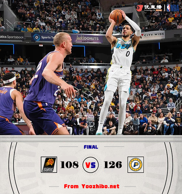 jrs直播网1月5日讯 NBA常规赛,步行者今日迎战太阳,前者上场比赛战胜热火,后者则是遭遇三连败,此役比尔可以出战,泰厄斯-琼斯缺战。比赛上来,步行者就率先进入状态打出7-0的完美开局,比尔则是连拿五分帮助太阳止血,杜兰特和布克此后也是相继得分与对手保持拉锯,次节双方都没有获得拉开分差的机会,半场结束时场上战至56-56平;下半场回来,步行者的进攻彻底打开,单节轰下40分,分差也是达到了两位数,末节太阳也没有获得迫近比分的机会,最终步行者轻取太阳,送给后者四连败。