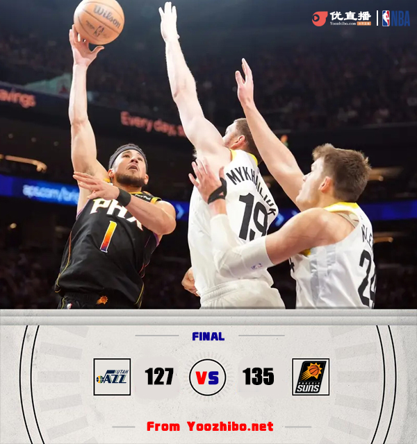 jrs直播网讯  北京时间2月8日讯 NBA常规赛,太阳主场迎战爵士。太阳3连败,以25胜25负排西部第9,爵士12胜37负西部倒数第2。比赛开始,布克高效输出,但爵士多点开花将分差拉开到两位数,次节太阳火力全开,布克里突外投连续得分,爵士命中率下降,太阳单节净胜10分,半场双方战成55平。易边再战,双方大打对攻,太阳火力更猛,布克手感滚烫第三节再拿10分,末节太阳占得先机将分差拉开到两位数,爵士奋力反击轰出13-0的攻击波扳平比分,双方争夺陷入白热化,关键时刻凯斯勒连续补篮拿分,科利尔压哨也有,阿伦三分绝平,将比赛拖入加时。加时赛,太阳连中三分轰出11-3的攻击波锁定胜局。最终,太阳135-127加时击败爵士,主场过关。