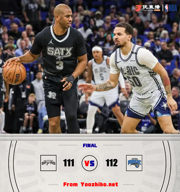jrs直播网讯 北京时间2月9日讯 NBA常规赛,魔术今日迎战马刺,前者上场比赛不敌掘金,后者则是惜败黄蜂,此役萨格斯缺战。比赛上来,两队打得相对胶着,不过在11-11平后巴恩斯突然爆发,个人连中了五记三分将分差拉开到两位数,但在首节后半段马刺的命中率出现下滑,魔术抓住机会完成反超,次节双方都曾打出小高潮,分差却没有再被拉开,半场结束时马刺领先3分;下半场回来,马刺占据了场上的主动权,在凯尔登和卡斯尔连续打成2+1后分差终于拉开到两位数,末节小瓦格纳和班凯罗联手追回比分,比赛悬念保持到了最后,关键时刻班凯罗命中高难度跳投反超,文班亚马绝杀球不中,最终魔术险胜马刺。