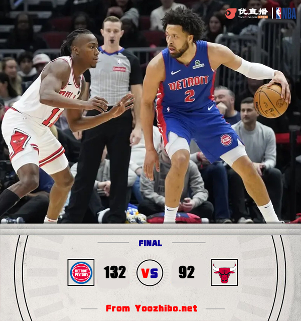 jrs直播网2月12日讯 NBA常规赛,活塞客场挑战公牛。活塞27胜26负东部第6,公牛22胜31负东部第10。上半场,活塞反客为主率先发力,多点开花很快取得两位数领先,次节公牛依旧低迷,打铁失误不断,活塞火力全开,攻防两端碾压对手一度将优势扩大到45分,半场战罢活塞71-29领先公牛。下半场,公牛进攻回暖,双方围绕40分的分差展开拉锯战,末节成为垃圾时间,最终,活塞132-92狂胜公牛40分。