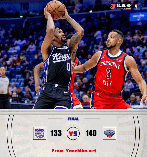 jrs直播网讯2月14日 NBA常规赛,国王对阵鹈鹕,国王最近打得不错取得3连胜,鹈鹕则是10连败在西部垫底,本场比赛锡安缺阵。开场后两队就打得大开大合,鹈鹕手感不错率先取得领先,国王大量尝试外线三分,他们靠着不错的三分命中率将比分追上,第一节尾声国王连续断球反击将比分反超。第二节上来鹈鹕先冲击内线夺回领先,随后两队陷入僵持,场上比分也是交替上升,拉文单节得分上双帮助国王在半场结束前保住优势。易边再战,麦科勒姆突然爆发,他第三节单节轰下21分帮助鹈鹕将比分反超。第四节上来鹈鹕一度扩大领先优势,厄尔三分弹无虚发,但萨博尼斯和德罗赞联手帮助国王将比分追上,但关键时刻德罗赞连续进攻不中,麦科勒姆关键抛投打进,蒙克拿到关键前场篮板造成布朗犯规,随后两罚全中拖入加时。加时赛中麦科勒姆手感火热接连砍分帮助鹈鹕拿下胜利,最终鹈鹕加时140-133力克国王结束10连败,国王3连胜被终结。