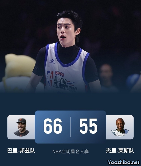jrs直播网北京时间2月14日讯 NBA全明星周末正式拉开大幕,名人赛率先开启,由巴里-邦兹队对阵杰里-莱斯队。中国艺人王鹤棣将代表邦兹队出战。首节莱斯队首攻打成后球员们开始玩起来,连续出现三分三不沾和失误,邦兹队8-0领先,王鹤棣中段身穿23号登场但有些紧,一个空篮和两次罚球都没中,首节双方打成10-10平,次节双方都有四分球入账,贼胖的巴朗-戴维斯篮下强打帮助邦兹队止血,演员弗林接连高难度中投还秀不看人妙传,王鹤棣补篮也拿到首分,半场邦兹队领先6分。第三节莱斯队麦克尤恩反击送一条龙暴扣震惊四座,但巴朗-戴维斯试手四分也能命中,随后进入翻倍时段和罚时罚人阶段,演员弗林再进四分,三节邦兹队领先12分,末节麦克尤恩三分也能扔进帮助莱斯队追分,但双倍时间邦兹队接连打成拉开20分以上领先,最终巴里-邦兹队66-55战胜杰里-莱斯队。