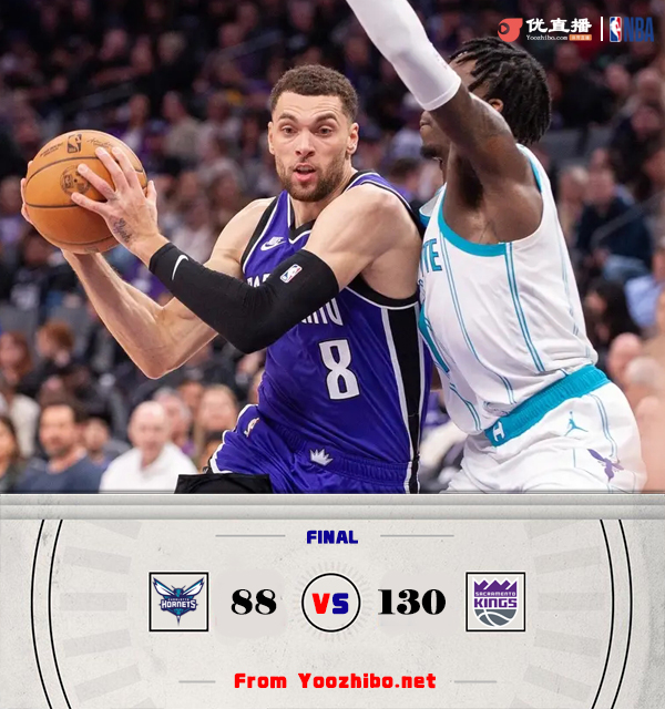 jrs直播网2月25日讯 NBA常规赛激战正酣,国王主场迎战黄蜂,两队上场均遭遇大败,国王目前28胜28负暂列西部第10,黄蜂14胜41负位列东部倒数第二。首节开打后布里奇斯连投带罚接连取分,黄蜂开局发力早早占优,拉文连中三分强势回应,国王稳扎稳打后来居上,首节结束时国王已经领先11分,次节回来,黄蜂进攻滞涩追分乏力,拉文手感依旧予取予求,德罗赞外线续上火力,半场战罢,国王确立20分优势。短暂休整后黄蜂突然发力回敬10-2小高潮,穆雷连投带补稳住局势,三节结束后国王依然领先16分,末节上来,拉文无人可挡再下三分雨,比赛分差过大提前失去悬念,最终国王130-88大胜对手。