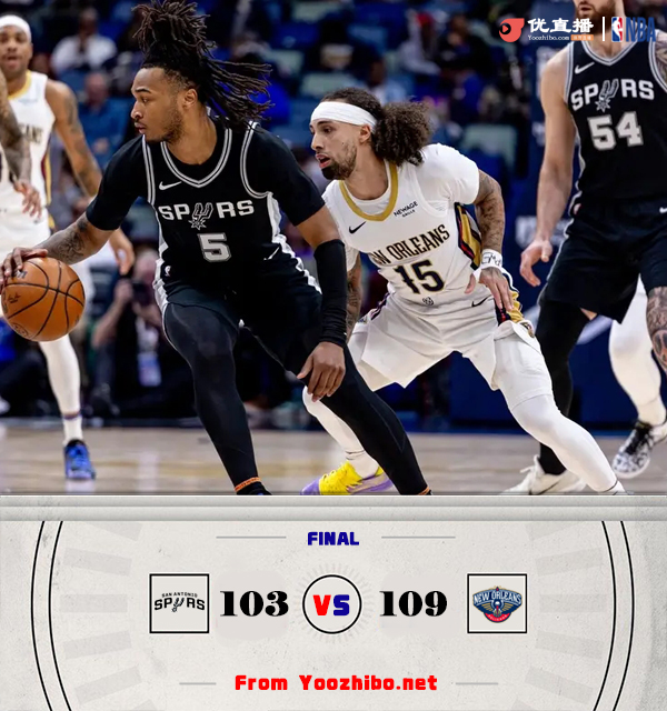 jrs直播网讯 北京时间2月26日讯 NBA常规赛,马刺对阵鹈鹕,两队上场比赛才刚刚交过手,鹈鹕轻松击败马刺。开场后巴恩斯手感火热外线不断命中三分,福克斯也接连杀入内线拿分,他们带领马刺半节时间打出23-8的攻势建立领先,随后阿尔瓦拉多连续拿分为鹈鹕咬住比分。第二节鹈鹕不断冲击内线追分,马刺三分手感依旧不错,布朗突然爆发带领鹈鹕掀起一波反扑将比分追上,期间墨菲也是连中三分。易边再战,瓦塞尔接连砍分帮助马刺巩固优势,鹈鹕则是不断冲击篮筐紧追不舍,两队你来我往大打对攻战,末节决战中鹈鹕上来就先将比分反超,锡安在内线强势发挥,瓦塞尔和福克斯连中三分为马刺夺回领先,但鹈鹕连续冲击内线又将比分反超,此后马刺进攻连续不中,墨菲一度崴脚好在没有大碍,保罗关键三分为马刺续命,但随后福克斯出现失误,最终鹈鹕109-103逆转三天内两胜马刺,马刺遭遇3连败。