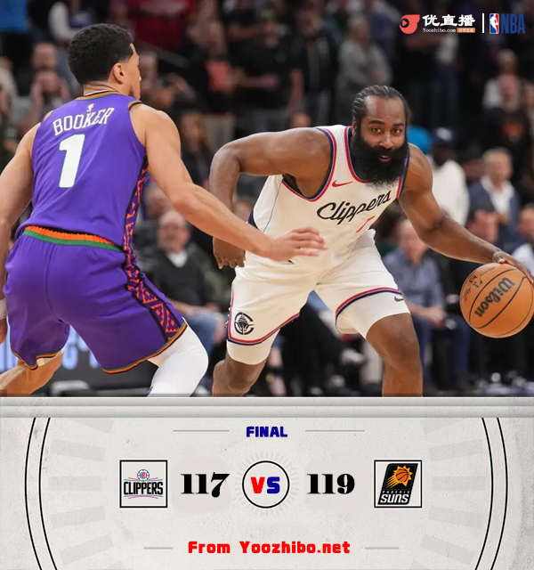 jrs直播网讯3月5日讯 NBA常规赛,快船对阵太阳,快船最近2负湖人已经掉到西部第八,本场比赛鲍威尔缺阵,太阳最近10场输了8场也是形势危险。开场后快船内外开花抢占先机,莱昂纳德开场进攻欲望强烈,普拉姆利替补登场后表现活跃,太阳在首节结束前掀起反扑将比分反超。第二节上来快船先声夺人打出攻势夺回领先,随后快船外线又是一阵三分雨将分差拉大, 祖巴茨在内线也多次吃饼拿分,太阳进攻端表现不佳,快船单节轰下41分净胜22分。易边再战,祖巴茨在内线依旧强势接连打进,场上分差拉大到20分,琼斯投进三分止血,但莱昂纳德手感火热帮助快船始终保持巨大优势。最后一节回来杜兰特连得10分帮助太阳打回悬念,虽然祖巴茨在篮下依旧神勇,但太阳反扑势头凶猛在杜兰特的带领下反超比分。布克关键两罚不中,太阳采用点球战术,哈登第二罚故意不中,快船拿到前场篮板但最后一攻不中,最终太阳119-117大逆转送给快船3连败,本赛季太阳实现横扫快船。