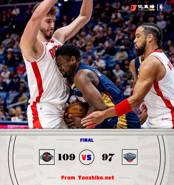 jrs直播网讯北京时间3月7日讯 NBA常规赛激战正酣,火箭和鹈鹕两支青年军正面对话,火箭遭遇3连败战绩来到37胜25负,暂列西部第5位,鹈鹕17胜45负排在西部倒数第二。首节开打后墨菲连拿7分率队占优,火箭内外结合及时回应,但墨菲无人可挡单节狂揽15分,鹈鹕领先3分结束首节争夺,次节回来,火箭始终无法打出追分高潮,鹈鹕稳扎稳打保持优势,半场战罢,鹈鹕依然领先3分。易边再战后鹈鹕进攻停滞,申京和杰伦-格林轮番冲击,末段鹈鹕进攻依然毫无起色,火箭顺势拉开比分,三节结束后火箭确立15分优势,末节上来,锡安连造杀伤率队追分,但火箭总能给予回应,最终火箭109-97击败对手,终结3连败的同时也终结客场8连败。