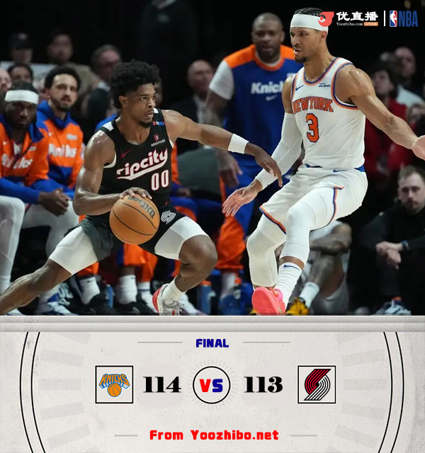 jrs直播网讯3月13日 NBA常规赛,尼克斯对阵开拓者,尼克斯上场比赛轻取国王结束连败,开拓者最近遭遇4连败。开场后两队打得十分激烈,场上比分也是交替上升,布里奇斯早早进入状态频频拿分。第二节两队依旧打得相当胶着,唐斯内线多次强打得手,卡马拉和夏普轮番砍分帮助开拓者紧追不舍。易边再战,阿努诺比用反击和三分为尼克斯先发制人,开拓者立马用一波7-0又将比分追上。最后一节两队依旧僵持不下,唐斯关键时刻连中两记三分,亨德森最后独得8分帮助开拓者将比赛拖入加时。加时赛中两队命中率都不理想,哈特发球失误,阿夫迪亚打成关键2+1反超比分,布里奇斯三分绝杀,最终尼克斯经过加时114-113险胜开拓者。