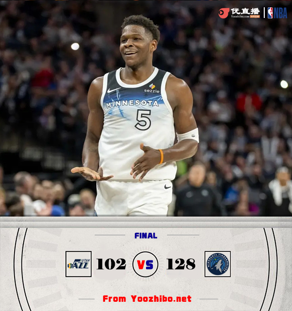 jrs直播网讯北京时间3月17日讯 NBA常规赛,森林狼主场迎战爵士。森林狼目前7连胜,39胜29负排在西部第7位;爵士则是8连败后15胜52负西部垫底。本场比赛,康利不打。比赛开始,爱德华兹状态出色,里突外投连砍10分带队轰出17-5不错开局,马尔卡宁接连三分止血,爱德华兹进攻挡不住单节轰下21分带队首节领先14分,次节爵士上来12-2直接咬住比分,森林狼迅速调整,多点开花回应12-2稳住领先优势,半场森林狼还领先11分。第三节,塞克斯顿带队追分,但爱德华兹再次发力,单节又轰下16分,森林狼直接拉开20分以上领先,末节森林狼换上替补练兵,克拉克攻防带队拉开30分以上领先,爵士无力回天,最终森林狼128-102大胜爵士,豪取8连胜同时送对手9连败。