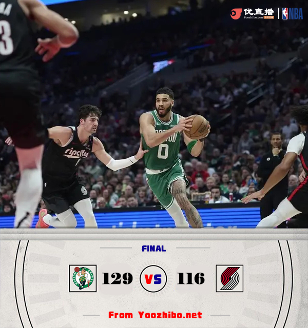 jrs直播网讯北京时间3月24日讯 NBA常规赛,开拓者主场迎战凯尔特人。两队都是4连胜,开拓者32胜39负西部第12,凯尔特人51胜19负东部第2。本场比赛,杰伦-布朗继续缺阵,霍勒迪和波尔津吉斯也不打。比赛开始,普理查德上来连续被吹犯规很快3犯下场,双方外线连续对飙,凯尔特人更胜一筹,塔图姆接连送助攻带队首节领先10分,次节开拓者发力连续反击一波12-0直接追平比分,霍福德接连中远投止血,绿军回应9-0稳住领先优势,随后凯尔特人外线继续发炮半场领先13分。第三节,塔图姆开始发力,里突外投单节轰下18分,凯尔特人一度拉开近20分领先,但顽强的开拓者还是追到差12分,末节双方继续对攻战,外线你来我往,但凯尔特人始终保持十几分领先,最终凯尔特人129-116力克开拓者,拿到5连胜同时终结对手4连胜。