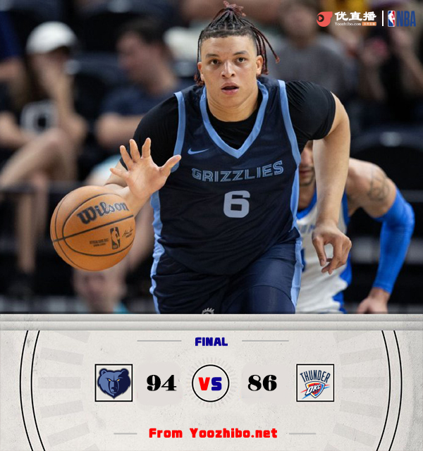 jrs直播网讯 7月6日讯 NBA犹他夏季联赛,灰熊对阵雷霆。首场夏季联赛,灰熊凭借洛夫顿的出色表现取得胜利。一开场,灰熊率先发力,连中三分占据主动,雷霆强攻内线努力追赶,灰熊稳定输出将分差拉开到两位数,雷霆外线开火三分4连击迅速缩小分差,灰熊连投带罚重获15分以上优势,但此后突然断电,雷霆大举反击多点开花轰出16-2的进攻狂潮,半场战罢灰熊56-54仅剩2分优势。下半场,双方命中率骤降,连续投篮不中,雷霆及时回暖连续冲击篮筐拿分完成反超,灰熊连中三分回敬8-2的攻势,末节灰熊外线发力连中3记三分再度将优势扩大到两位数,雷霆苦苦追赶无果。最终,灰熊94-86击败雷霆,取得夏季联赛2连胜。