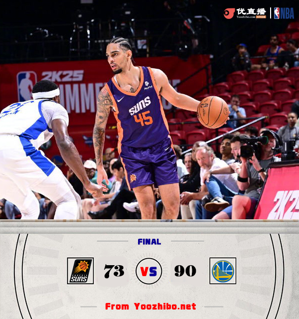 jrs直播网讯 7月14日 NBA夏季联赛继续开打,太阳和勇士迎来一场交手,勇士方面仍然派出波杰姆斯基和戴维斯的“老带新”阵容,太阳则是新援罗迪带队。首节勇士在和太阳短暂纠缠后迅速接管比赛,后半段几乎弹无虚发轰出21-4的攻势直接拉开两位数分差;次节勇士虽然进攻端不如首节,但他们让对手5分钟里仅得5分的防守非常成功,这一节稳定的防守帮助他们取得17分的优势进入下半场。休息归来太阳虽然进攻端稍有回暖但依旧无法阻止对手,勇士第三节首发5人里4人得分上双完全控制着比赛节奏,末节分差拉大至20分以上后比赛也彻底失去悬念。最终,勇士轻取太阳拿下比赛。