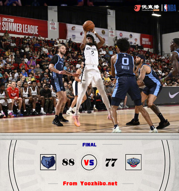 jrs直播网讯7月18日讯 NBA夏季联赛,鹈鹕主场迎战灰熊。鹈鹕选秀大会上主要选中21号秀米西、47号秀里夫斯和52号秀马特科维奇;而灰熊则是摘得9号秀埃迪、39号秀韦尔斯和53号秀斯潘塞。比赛开始,鹈鹕上来就接连外线命中三分,而灰熊则是靠9号秀埃迪连续内线打成并送暴扣回应,双方展开对攻拉锯战,比分拉不开,双方首节打成25平,次节双方命中率都有下降,小皮蓬又攻又传带领灰熊咬住比分,而鹈鹕则是靠霍金斯和福特撑起进攻,埃迪盖帽时扭伤脚踝,半场双方继续打成43平。下半场,小皮蓬上来接连推反击送助攻,带领灰熊一波12-3攻击波一举拉开双位数领先,鹈鹕接连冲击内线打成2+1止血,三节灰熊领先到7分,末节双方展开拉锯战,雅罗接连外线扔进三分,灰熊顺势一波7-0重新拉开双位数领先,最终灰熊88-77力克鹈鹕。