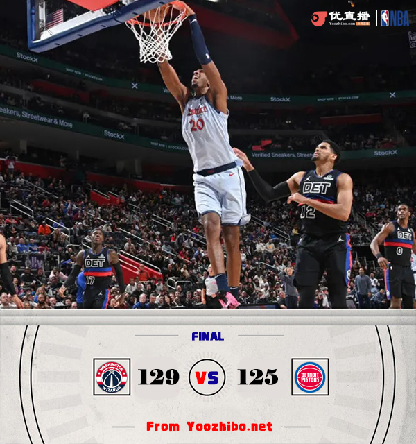 jrs直播网讯北京时间3月14日讯 NBA常规赛,奇才对阵活塞,奇才2连败继续在东部垫底,活塞则是拿到2连胜继续占据东部第六。开场后康宁汉姆和哈里斯联手帮助活塞以11-3开局,米德尔顿状态不错接连砍分帮助奇才追上比分,随后奇才连中三分完成反超,活塞也在外线及时回应,首节两队打成平手。第二节依旧是活塞率先发力,奇才后来居上完成反超,康宁汉姆重新登场后为活塞止血,两队再度陷入拉锯战。易边再战,奇才上来外线一阵三分雨将分差拉大到两位数,康宁汉姆再次站出来带领活塞打出攻势,活塞以一波11-0的攻击波反超比分结束第三节。最后一节奇才多点开花再度打出气势,两队陷入僵持,康宁汉姆连续拿分,乔治则两记三分回应,萨尔顺下完成暴扣,此后活塞进攻未果,奇才罚球巩固优势,最终奇才力克活塞。