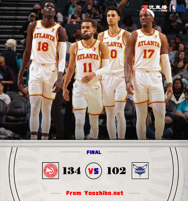 jrs直播网讯北京时间3月19日讯 NBA常规赛,老鹰对阵黄蜂,老鹰最近2连败排东部第七,黄蜂上场比赛惨败给快船,鲍尔和布里奇斯本场比赛缺阵。比赛开始后老鹰就在防守端展现出不错的强度,多次形成抢断和封盖,奥孔武连中三记三分帮助老鹰建立优势。杰弗里斯找到手感连续拿分回应,黄蜂一路追到只差1分。第二节老鹰率先发力又将分差拉大到两位数,黄蜂虽然期间多次掀起反扑,但老鹰外线手感不错多次回应三分,半场结束前老鹰又是连连打出反击巩固优势。易边再战,老鹰上来一阵三分雨直接将分差拉大到20分以上,其中里萨谢独中三元。此后黄蜂也无力再缩小分差,老鹰末节依旧轻松掌控场上局面,迪亚巴特受伤,最终老鹰134-102大胜黄蜂结束2连败,黄蜂连遭两场大败。