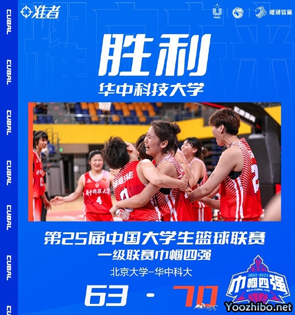 加时赛,刘贝三分上来就进,陈玉婕上篮也能锦上添花,而北京大学进攻端则是比较乏力仅靠王梓伊罚球拿到1分,霍俊彤和杨谭玥影接连上篮命中杀死比赛,最终华中科大加时70-63战胜北京大学,晋级决赛!