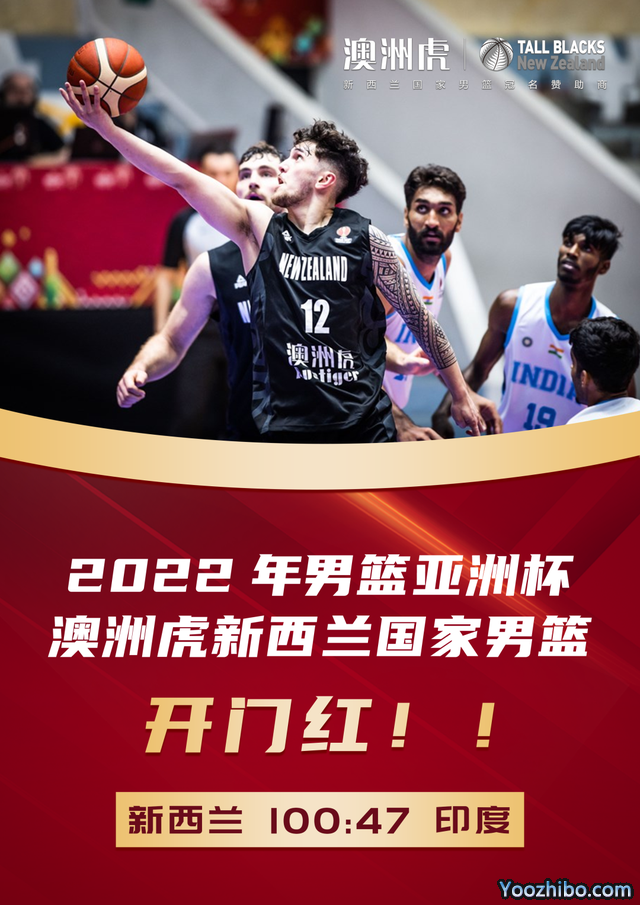 jrs直播网讯 北京时间7月13日,2022男篮亚洲杯第二比赛日打响,在刚刚结束的比赛中,身披澳洲虎战袍的新西兰男篮以100-47狂胜印度男篮,取得开门红。